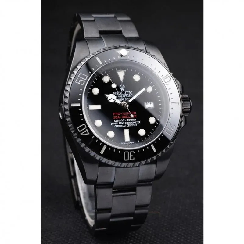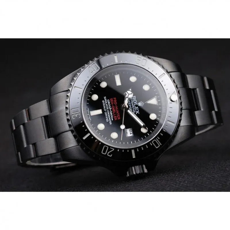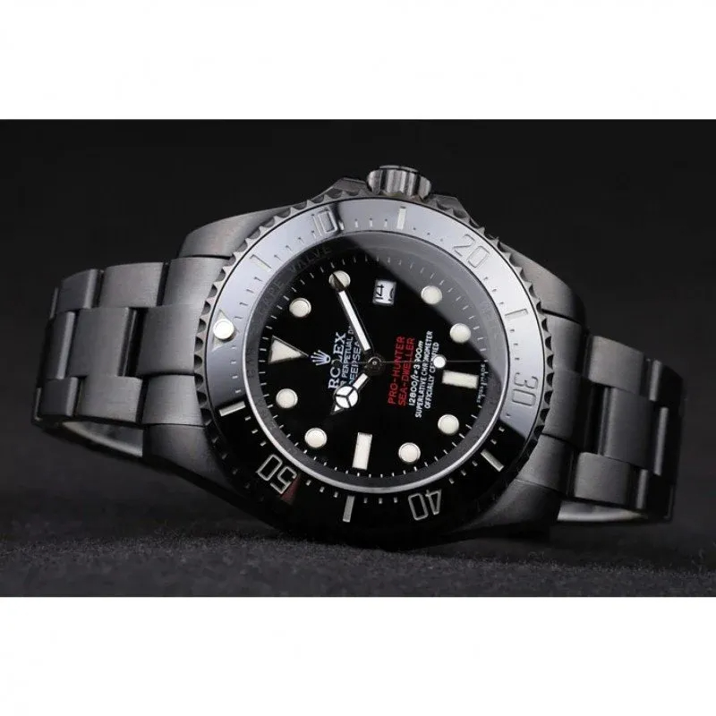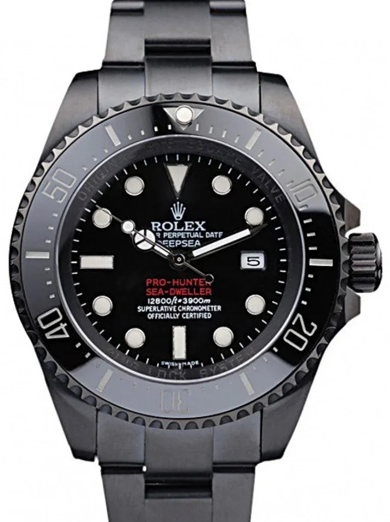 The Replica Rolex Deepsea 42mm Black Dial (REP016819) is a men’s professional diving watch with a classic male-oriented 42mm case and sporty design.