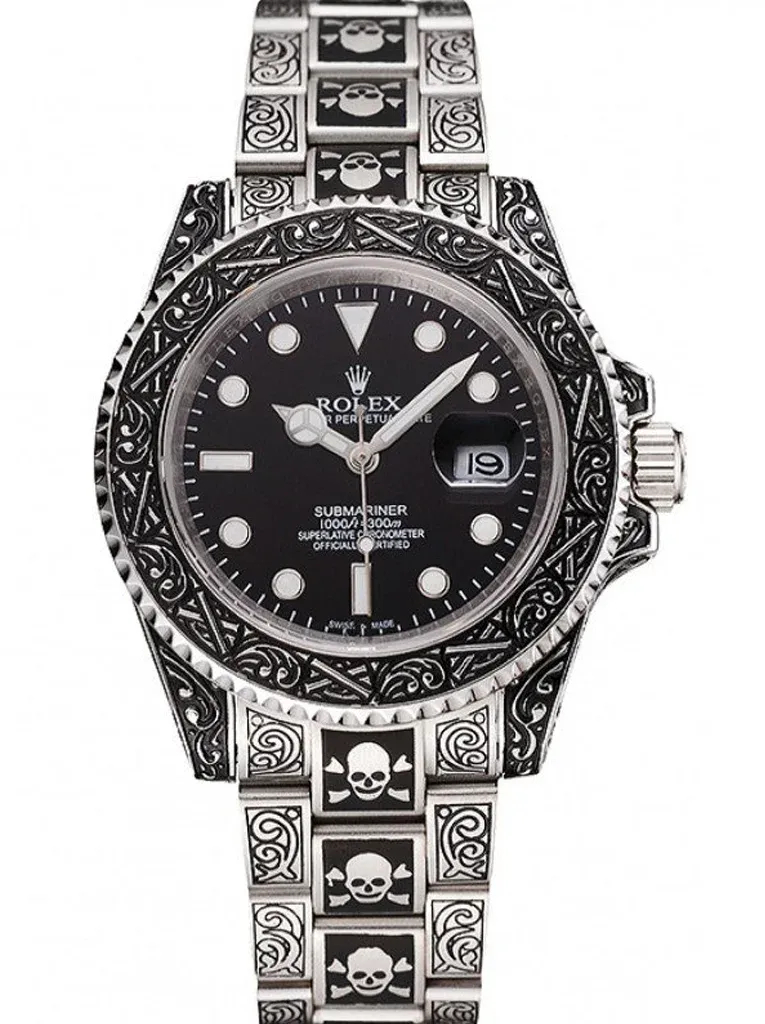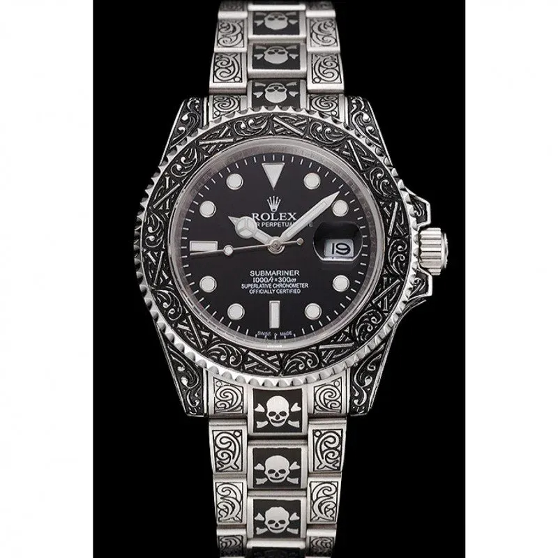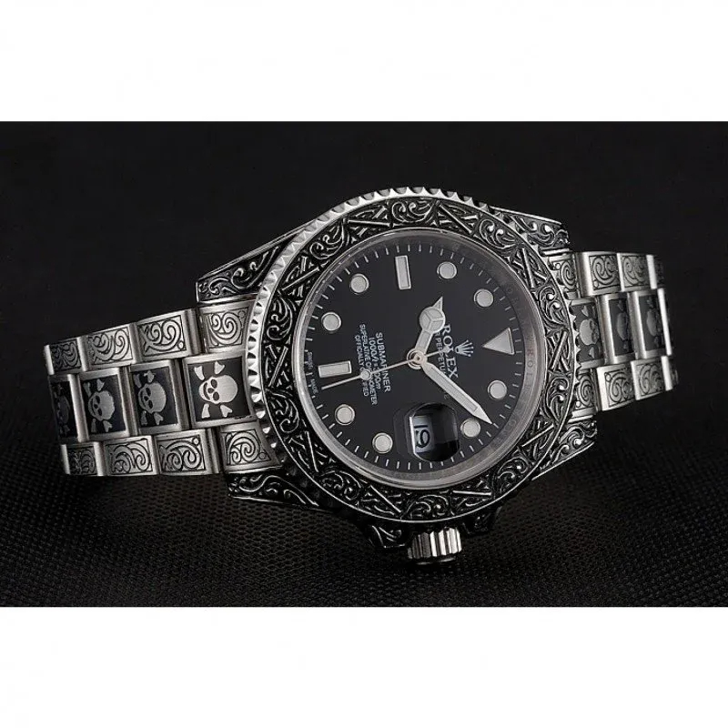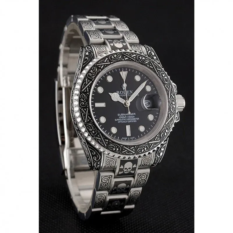 The Replica Rolex Submariner 41mm Black Dial 1454090 features a robust Oyster case crafted from 904L stainless steel, offering exceptional corrosion resistance and long-lasting luster after polishing. It is paired with a unidirectional rotating ceramic bezel marked with 60-minute scales, featuring a knurled edge for easy operation even with gloves. The zero marker is filled with luminescent material, ensuring clear readability in dim environments. The sleek black dial exudes elegance, with hour markers and hands made of Chromalight luminescent material that emits a strong blue glow—ideal for underwater reading. A date window is located at the 3 o’clock position.