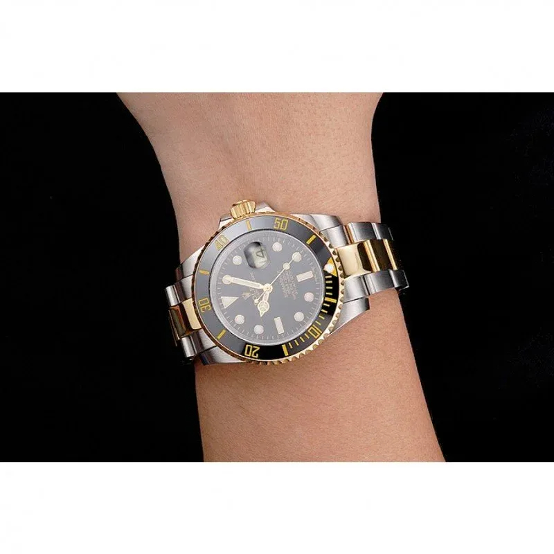 A premium Replica Rolex Submariner PR16233BG – 41mm two-tone stainless steel/gold watch with black dial, Swiss automatic movement, sapphire crystal, and 30m water resistance.