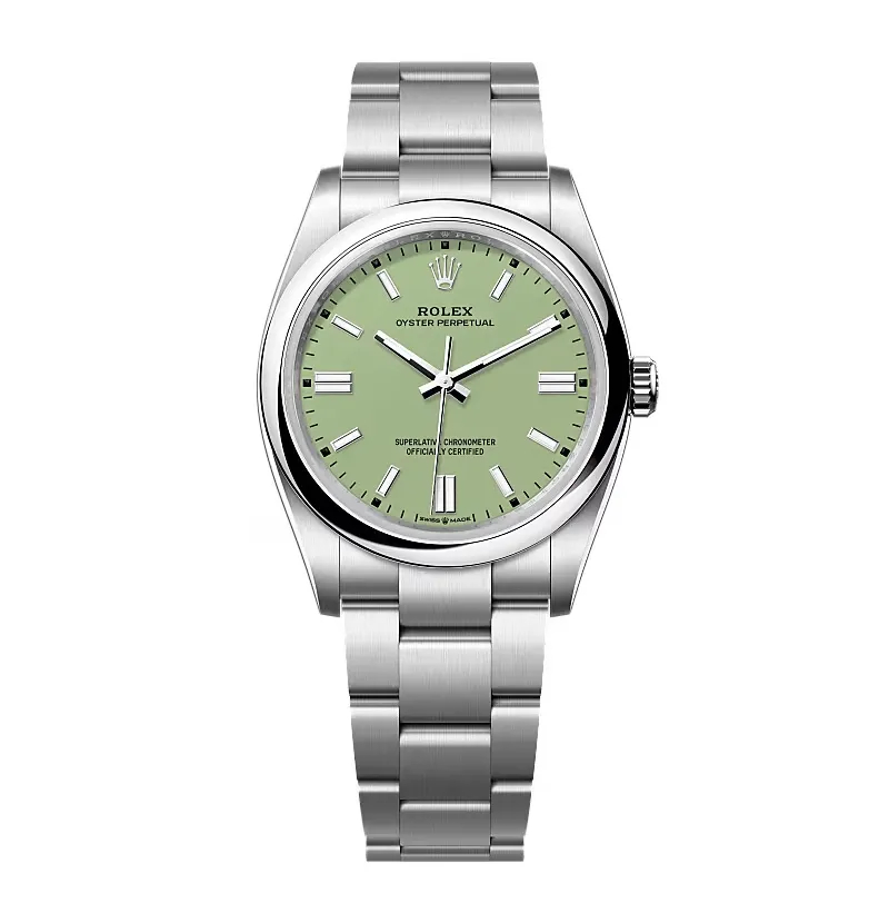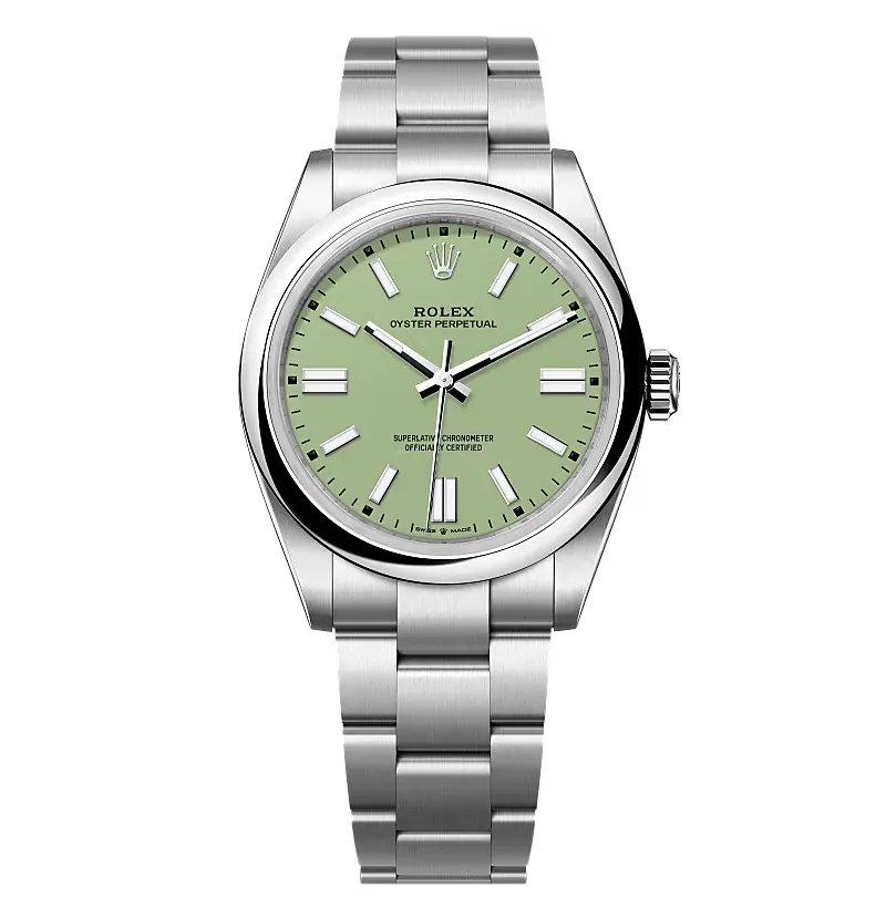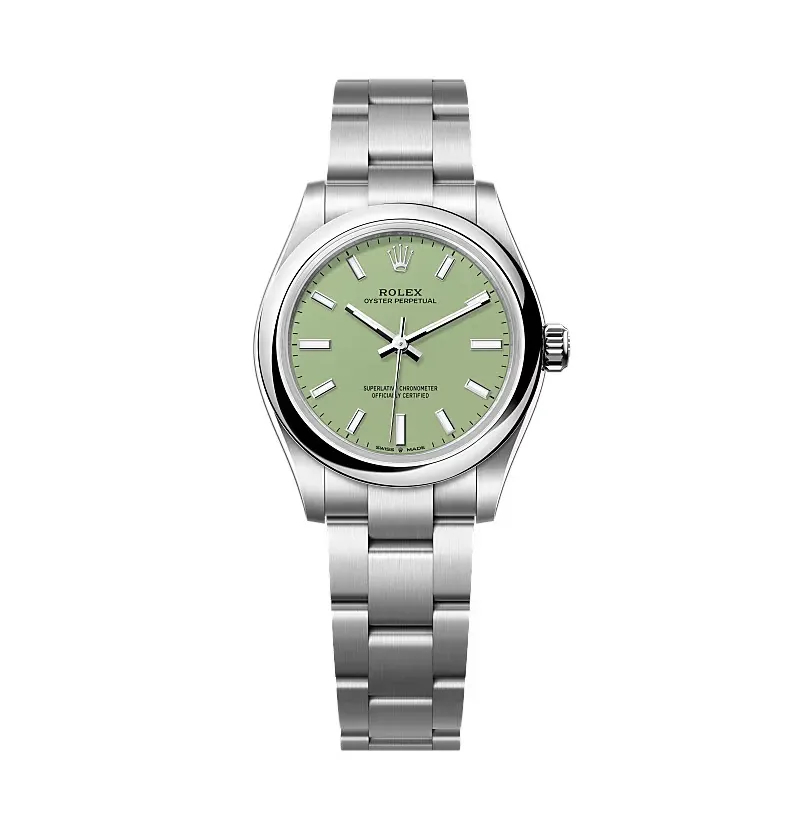 The Replica Rolex Oyster Perpetual 277200 Pistachio Dial blends timeless style with modern functionality, offering durable materials, precise movement, and size options for all.