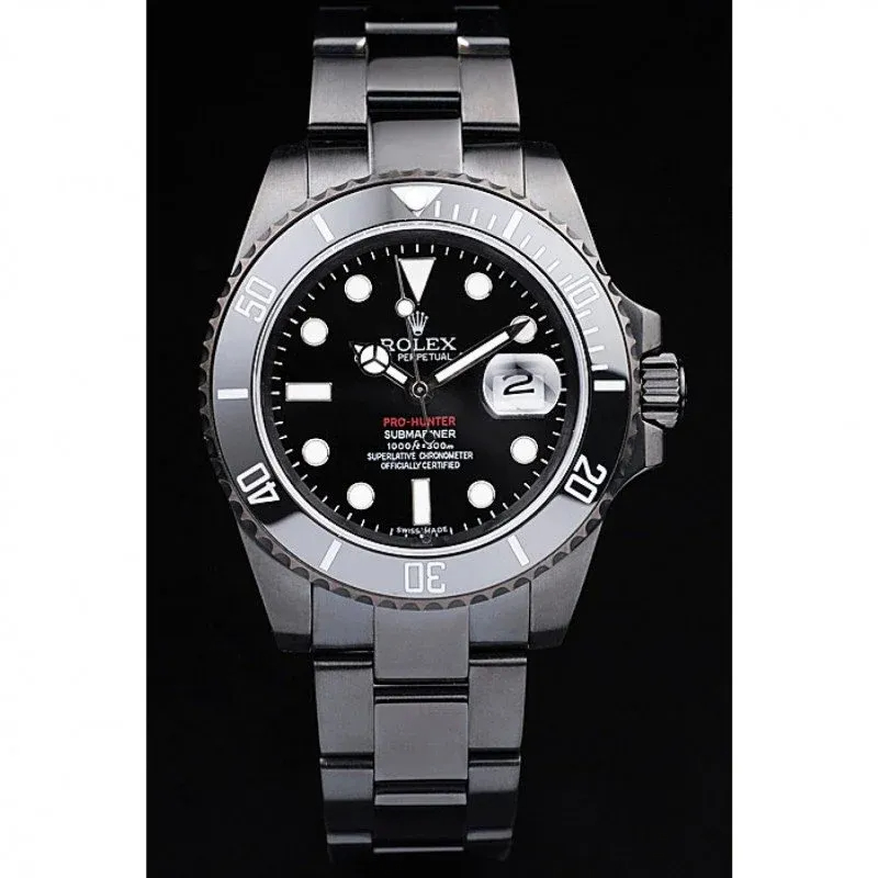 Rolex Submariner PRHUNTERPRO 41mm Men’s Watch: Black Dial, Swiss ETA Automatic Movement, Ion-Plated Steel, Sapphire Crystal—Luxury Everyday Accessory at Unbeatable Price from Bob’s Time.