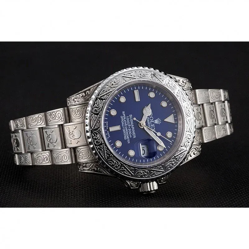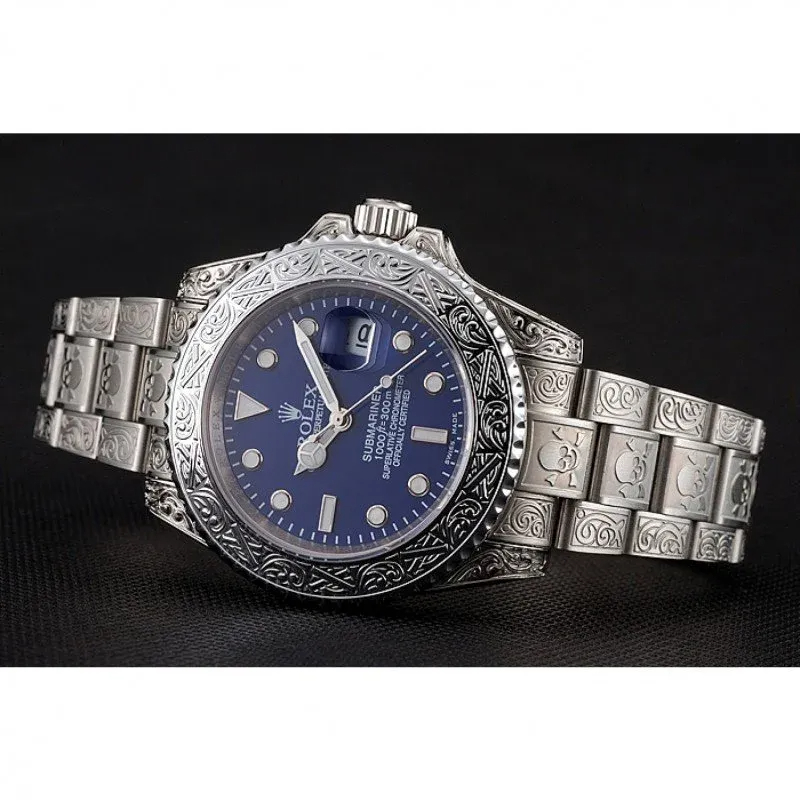 The watch’s vivid blue dial serves as a striking focal point, complemented by luminescent hour markers and hands that ensure optimal readability in any light condition – a practical design element rooted in the Submariner’s maritime heritage. Protected by a scratch-resistant sapphire crystal, the dial remains pristine even with regular use, while the watch boasts water resistance, making it suitable for everyday activities. Every detail, from the precise dial printing to the smooth rotation of the bezel, reflects the meticulous craftsmanship that has made Rolex a symbol of luxury worldwide.