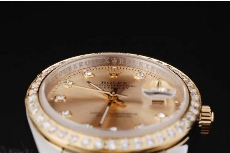 Men’s Superclone Rolex Datejust 36mm Gold Dial SRL40: Swiss ETA automatic, sapphire crystal, 30m water resistance.